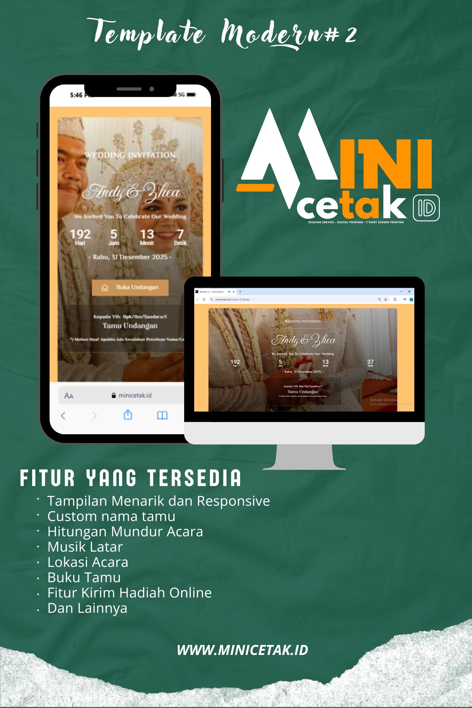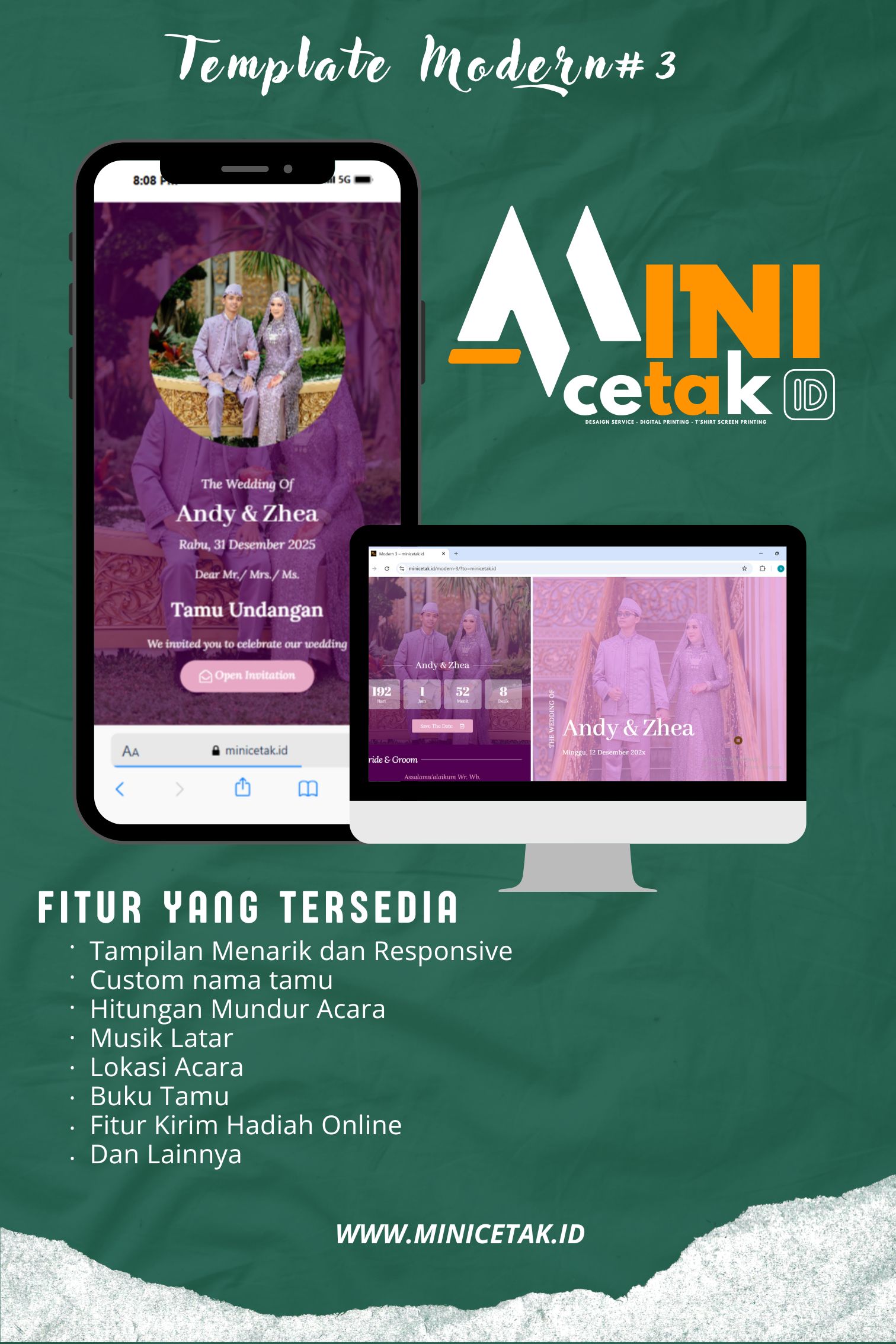 Saatnya beralih ke undangan digital. WebsiteUndangan.com siap bantu sebarkan momen bahagiamu tanpa terhalang jarak dan waktu.