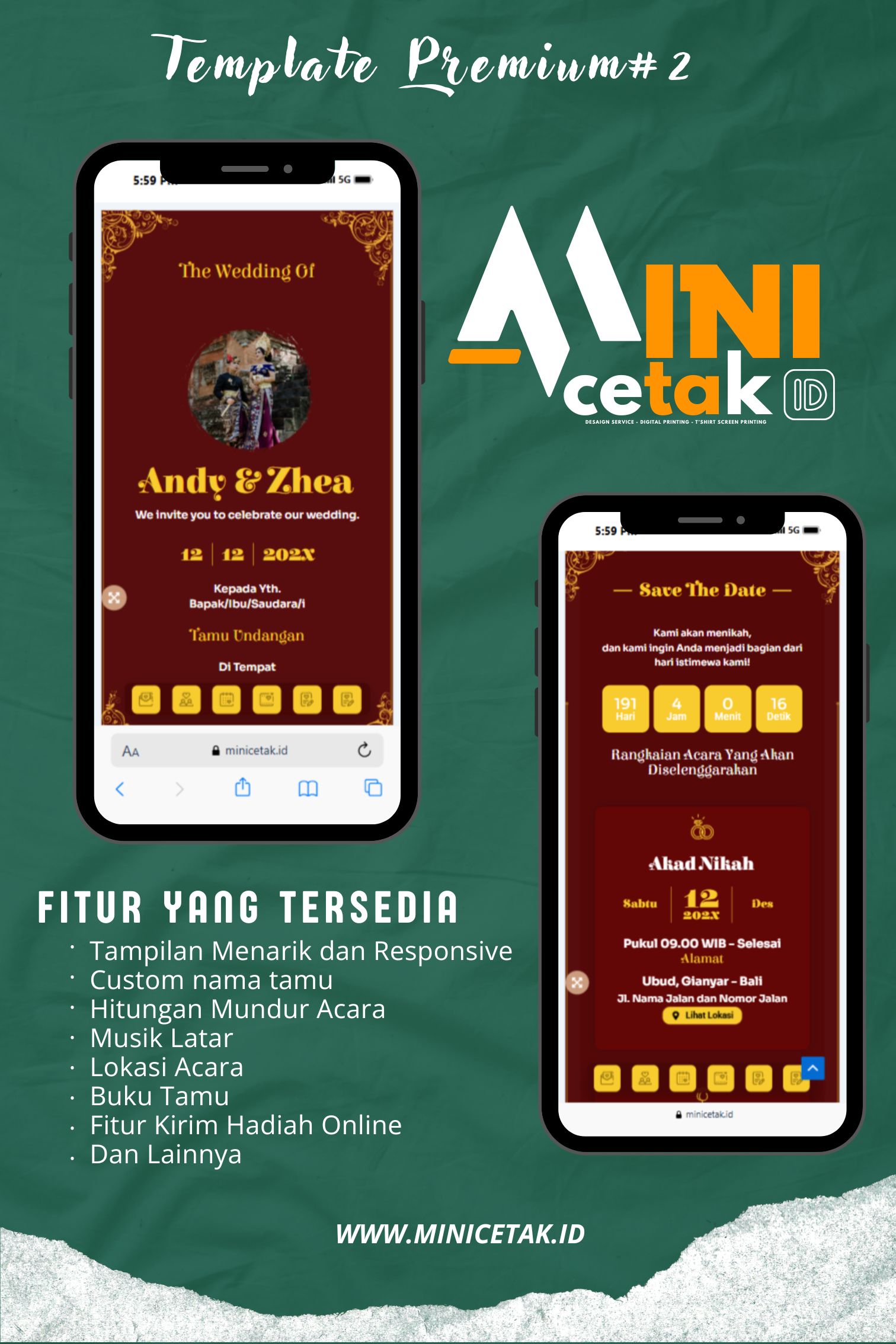 Tersedia beragam pilihan aneka template undangan digital yang menarik & kekinian.